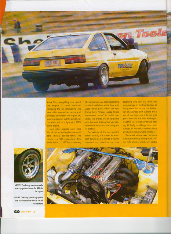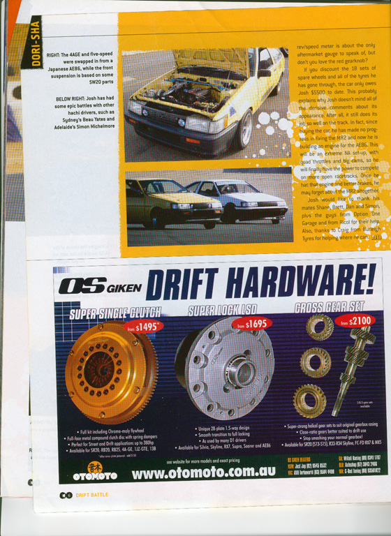 Back in 2004, the now well-known sport of drifting was only in it’s infancy here in Australia. A driver well known to the ’86 fraternity for competing in his pink Levin Hatch in Drift Australia and more recently for putting a 1UZ-FE V8 motor into his now red Hachiroku, Josh Young began his 86 drifting career in a piss yellow ’86 sporting only the most basic of basic modifications. He showed that you didn’t need massive amounts of power or fancy mods to be competitive in the drift scene back then.